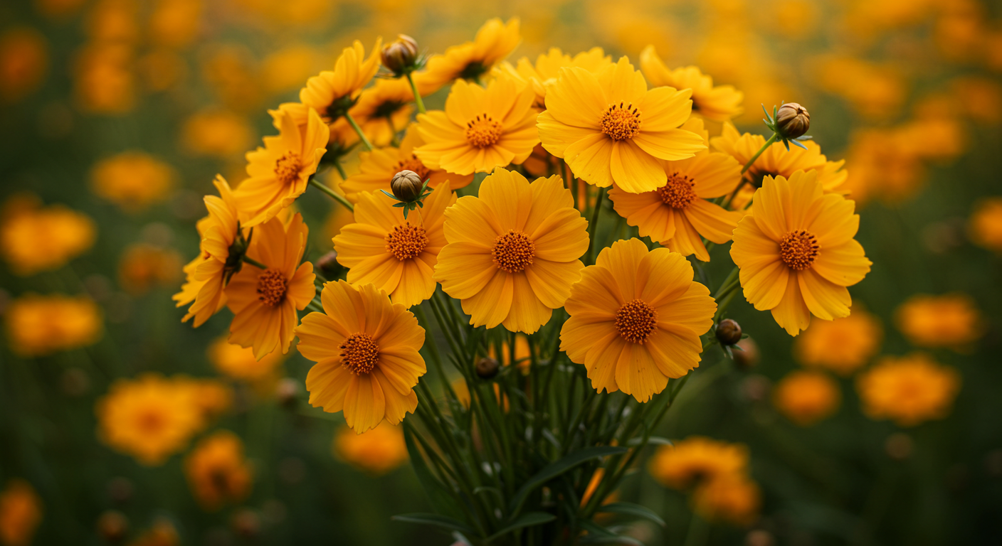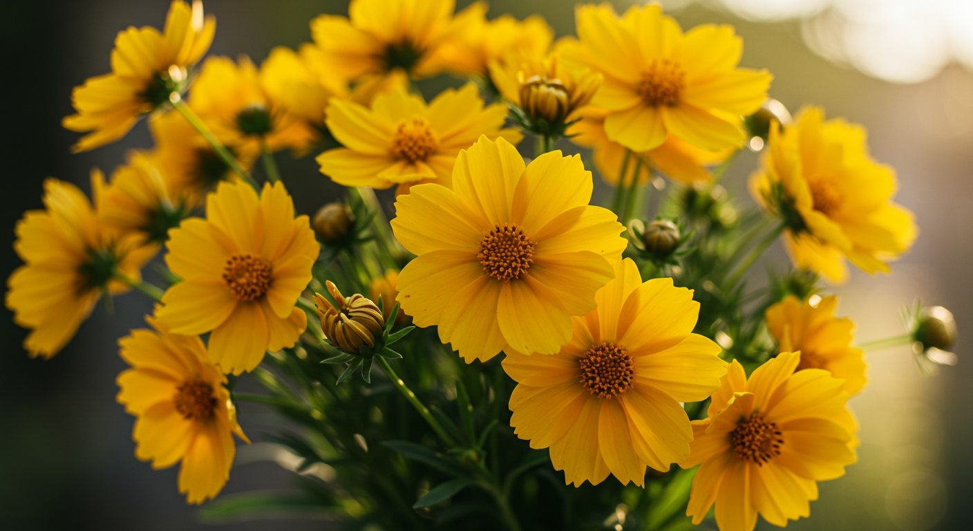 - 희망과 기쁨: 금빛에 가까운 꽃잎은 밝고 긍정적인 기운을 전하는 데 적합해요. 금계국은 주변 환경을 환하게 밝혀주는 존재로, 긍정과 희망의 상징이에요.