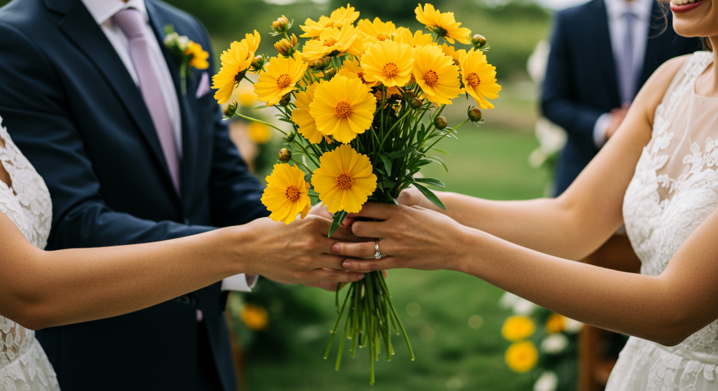- 항상 사랑한다: 금계국의 밝은 노란색은 따뜻한 사랑과 애정을 상징해요. 이 꽃말은 두 사람의 사랑이 변치 않고 영원하기를 바라는 마음을 담고 있답니다.