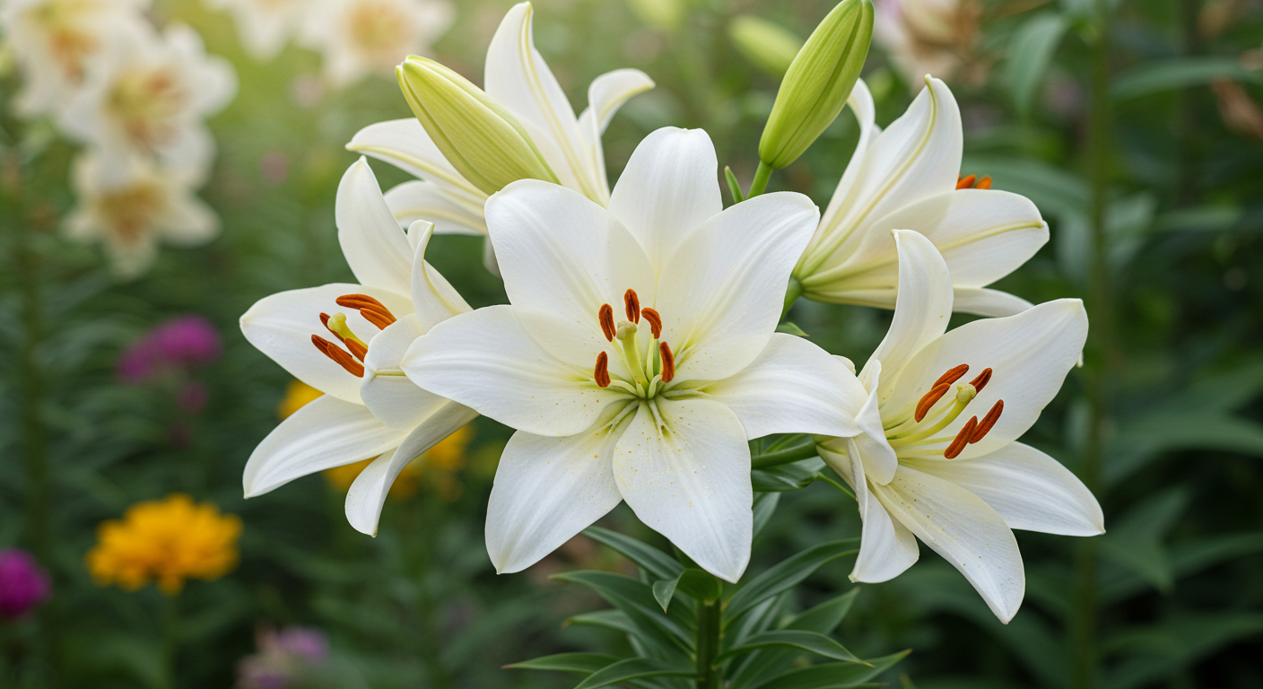 백합은 '순결'과 '순수'를 상징하는 꽃이에요. 또한 '위엄'이라는 꽃말도 가지고 있죠. 그래서 누군가에게 존경의 마음을 전하고 싶을 때 백합을 선물하면 좋아요. 특히 흰 백합은 순수한 사랑을, 분홍 백합은 행복한 사랑을 의미해요.