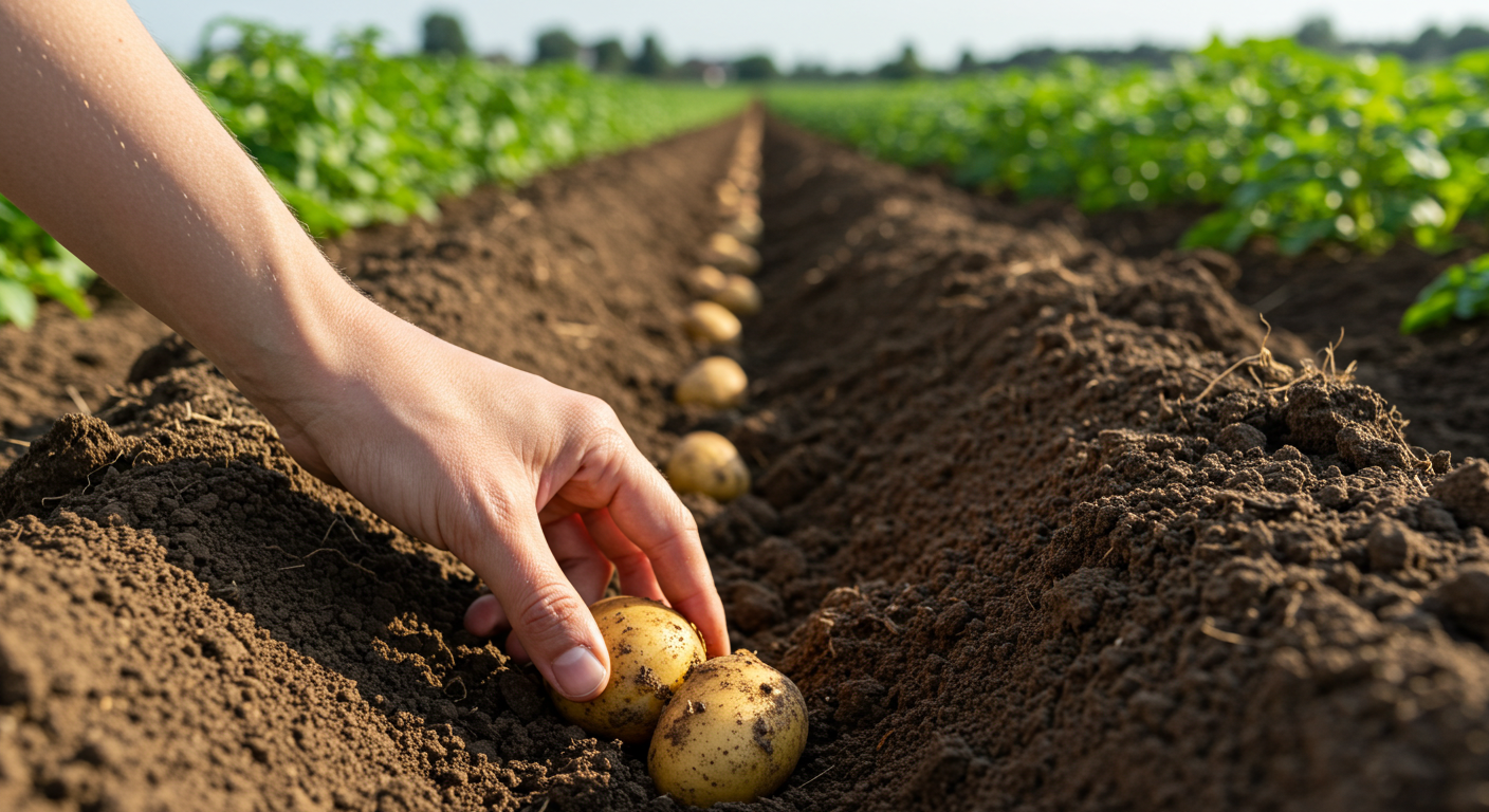 - 감자 씨앗 심기: 준비된 씨감자를 구멍에 넣고, 눈이 위로 향하도록 배치합니다.