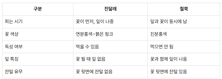 - "철쭉 = 먹을 수 없는 꽃, 꽃과 잎이 동시에 남"