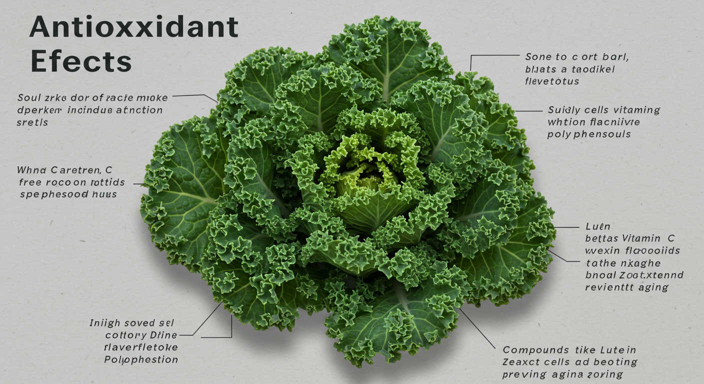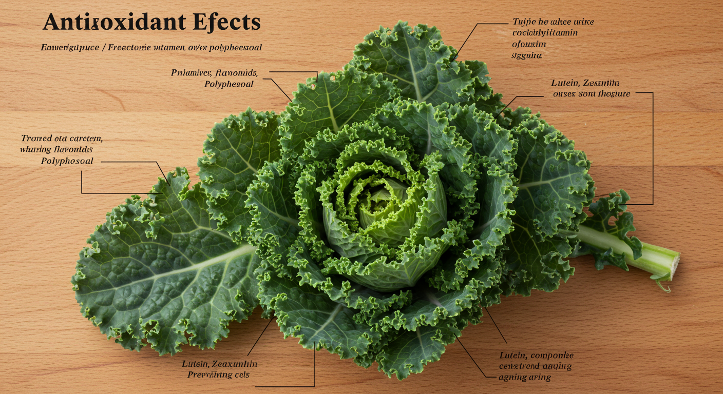 컬리케일은 항산화 성분인 베타카로틴, 루테인, 비타민 C, 제아잔틴 등을 다량 함유하고 있어요. 이러한 성분들은 체내에서 산화 스트레스를 억제하는 데 매우 효과적입니다. 특히, 루테인과 제아잔틴은 눈 건강을 돕고 장기적인 시력 저하를 예방하는 데 중요한 역할을 해요.