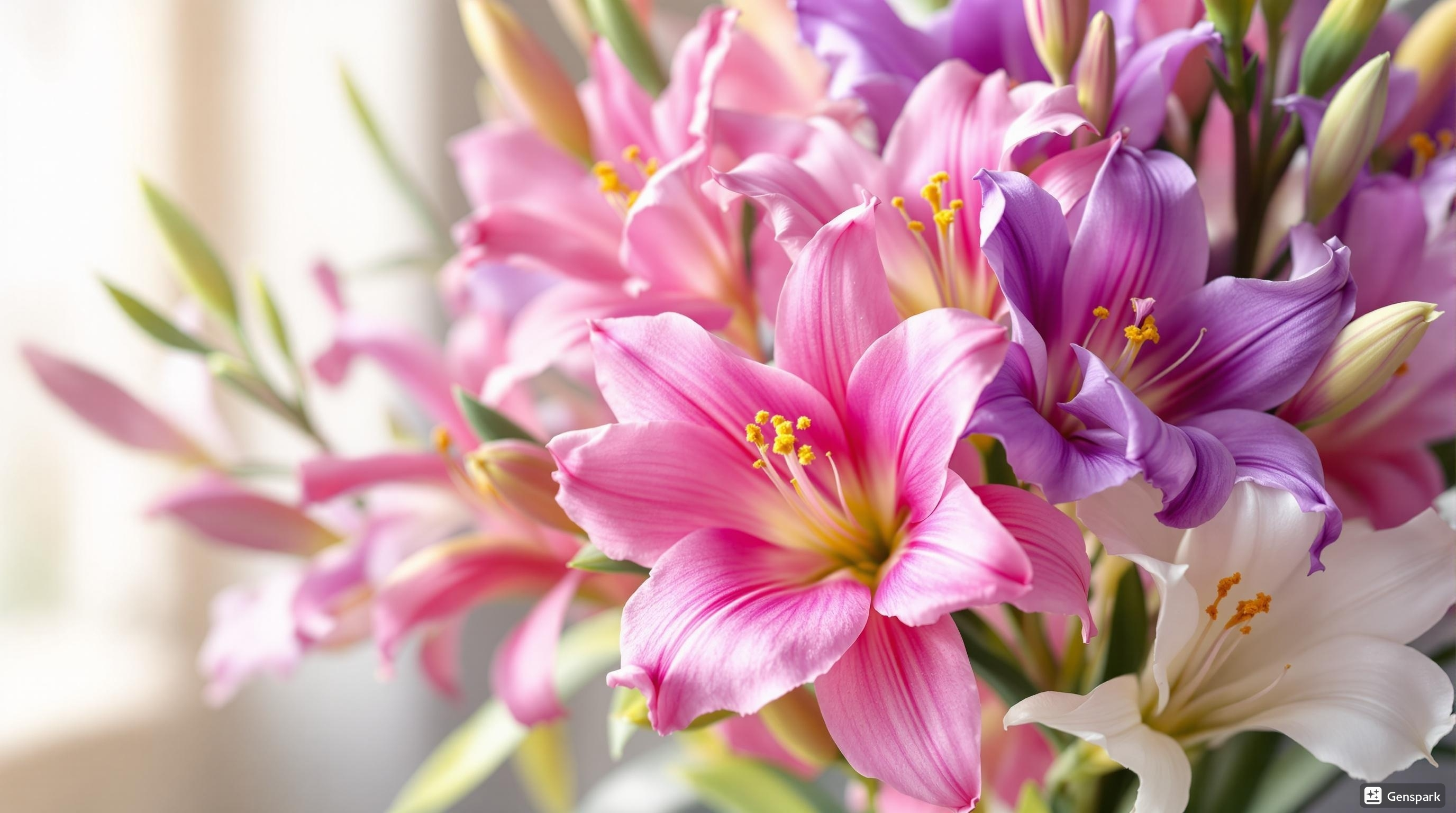 프리지아는 상대적으로 키우기 쉬운 꽃으로, 적절한 환경에서 잘 자랍니다. 햇볕이 잘 드는 곳에 놓고, 주기적으로 물을 주는 것이 중요합니다. 또한, 섭씨 15도에서 20도 사이의 온도가 적합하며, 과습하지 않도록 관리해야 건강하게 자란답니다.