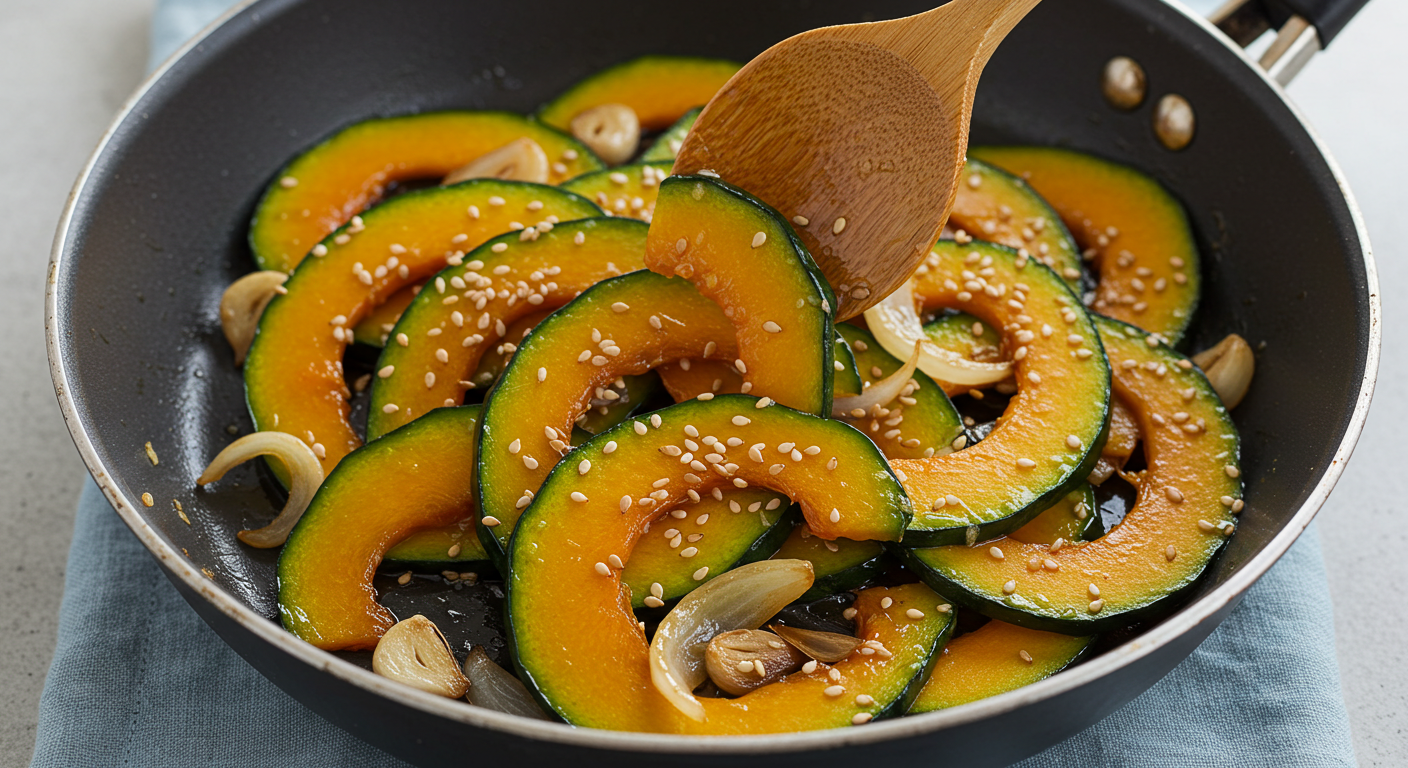 호박을 얇게 썰어 소금으로 살짝 절인 후, 기름을 두른 팬에 마늘, 양파와 함께 볶아냅니다. 참기름과 깨를 뿌려 마무리하면 손쉽게 호박 반찬이 완성됩니다.